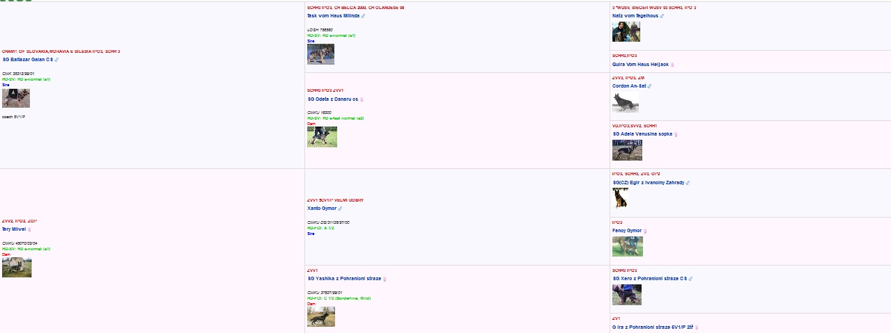 Vrh - B, otec Oskar z Milberku RTG DKK 0/0, ZVV1. Vrh narozen 13. 7. 2010. Narozeno 13 štěnat 9 fen a 3 psi. Tři fenky zemřely při porodu.